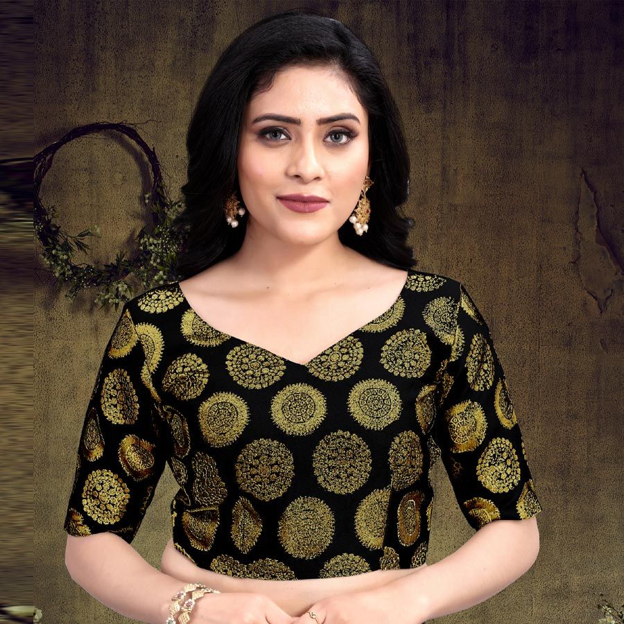 Black and Grey color Blouse in Brocade fabric with Weaving work