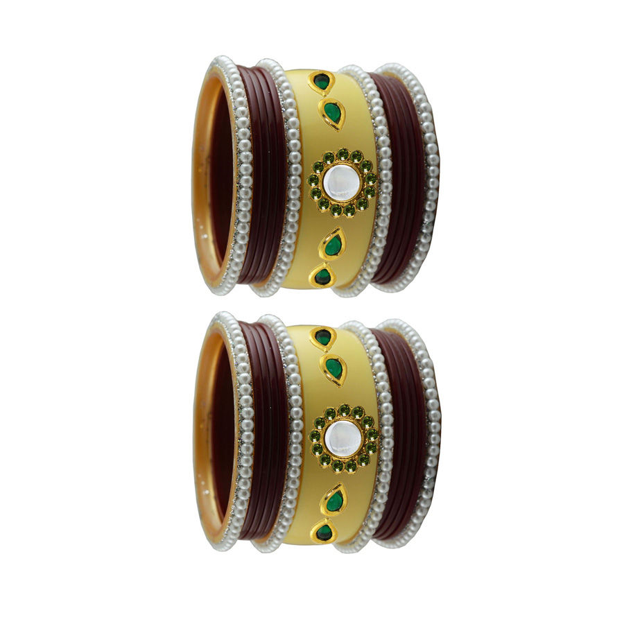 Enamel Beige and Brown, Red and Maroon color Bangles in Metal Alloy studded with CZ Diamond