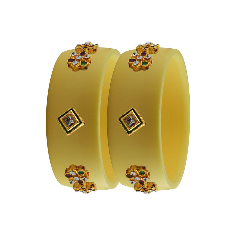 Enamel Yellow color Bangles in Metal Alloy studded with CZ Diamond
