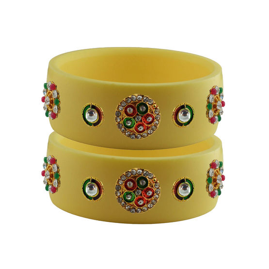 Enamel Yellow color Bangles in Metal Alloy studded with CZ Diamond
