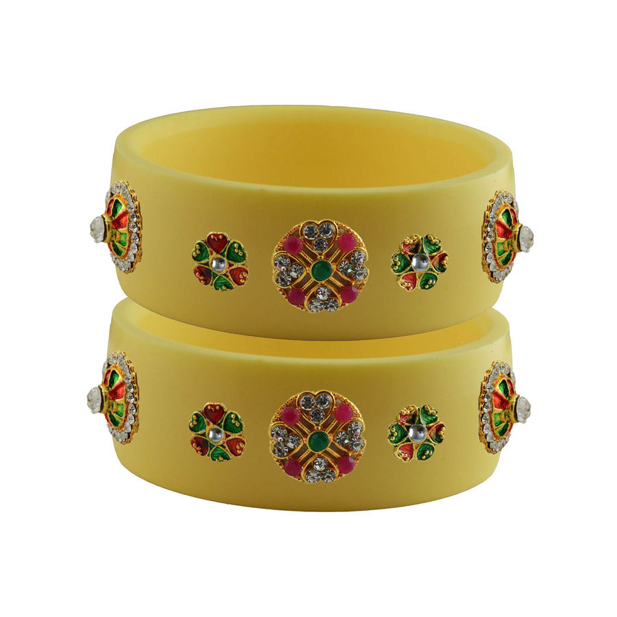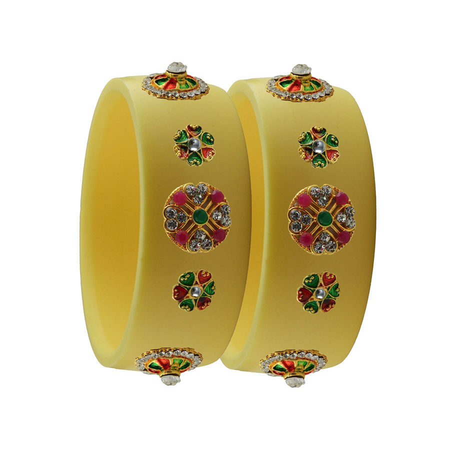 Enamel Yellow color Bangles in Metal Alloy studded with CZ Diamond