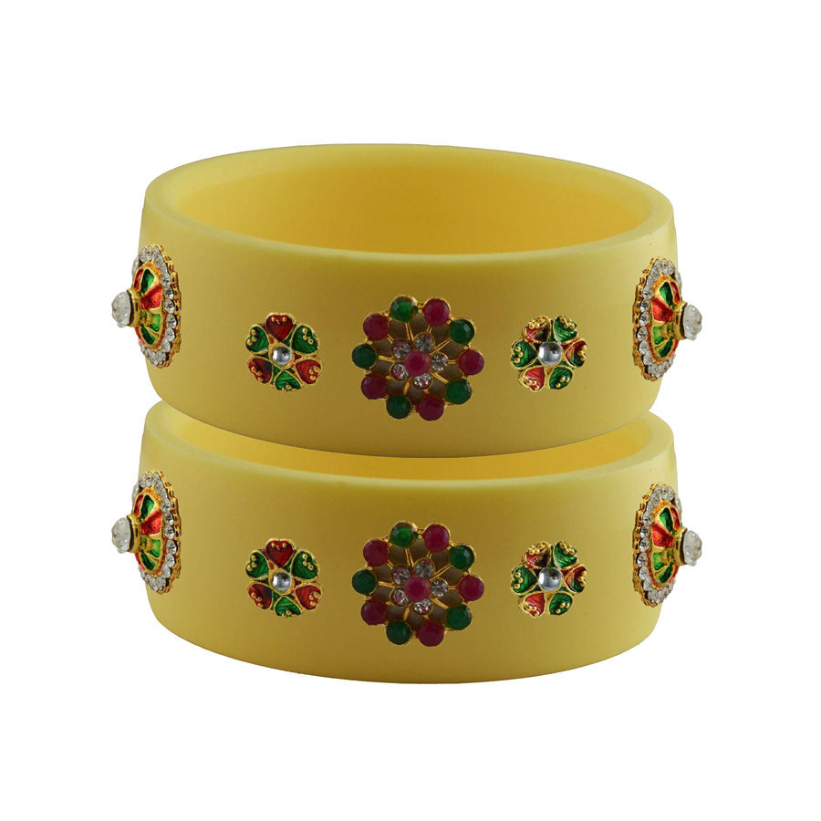 Enamel Yellow color Bangles in Metal Alloy studded with CZ Diamond