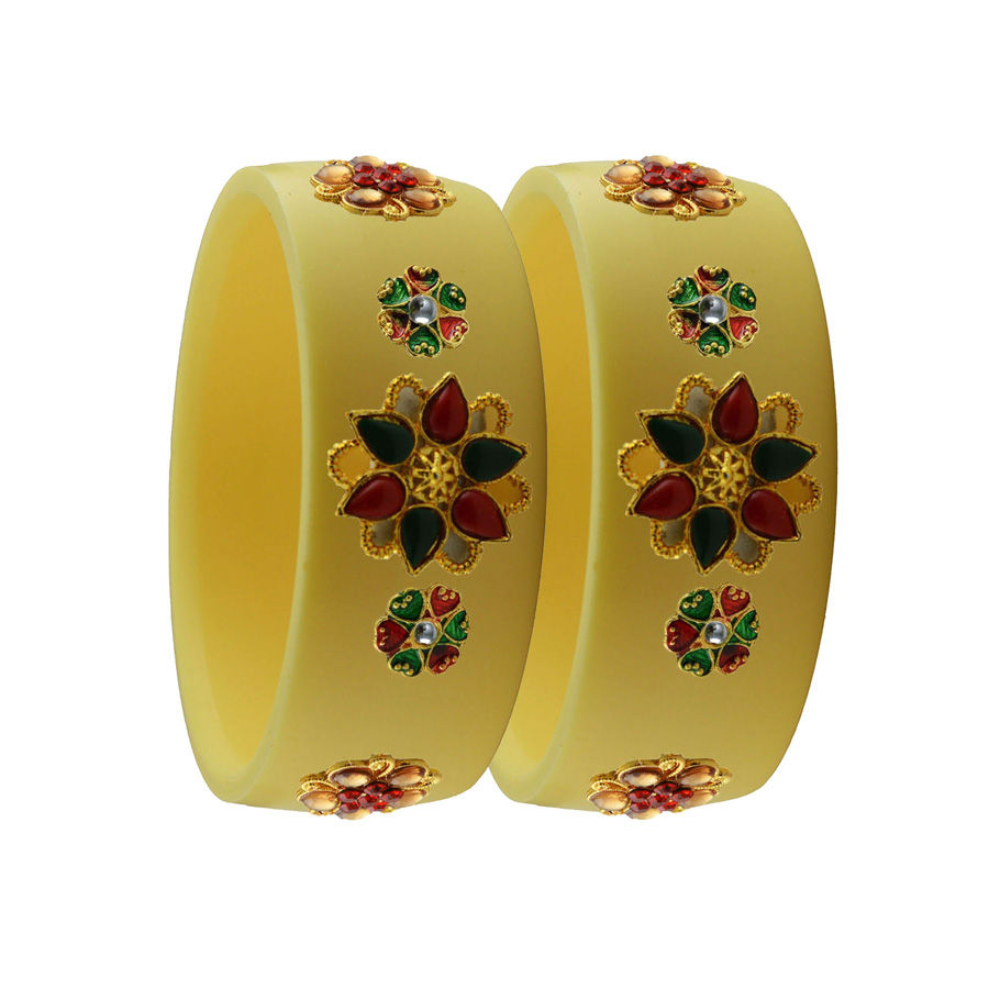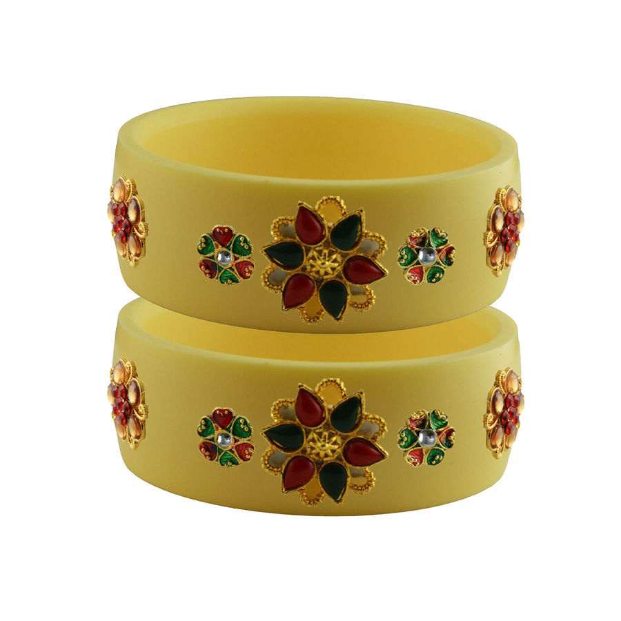 Enamel Yellow color Bangles in Metal Alloy studded with CZ Diamond
