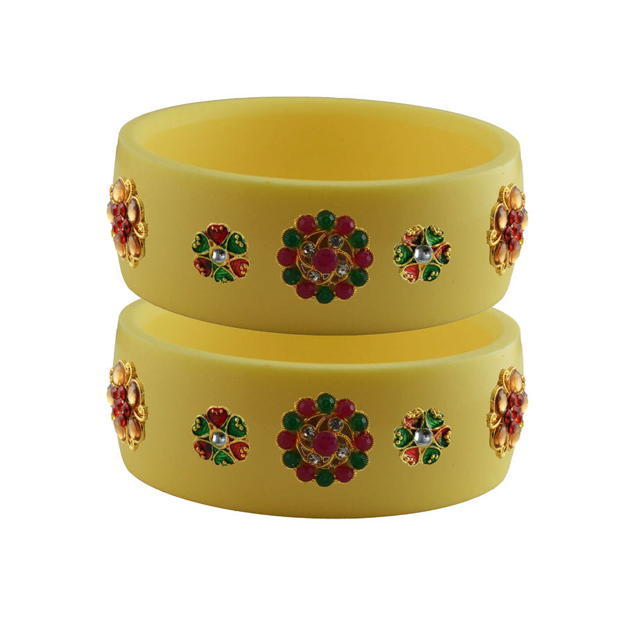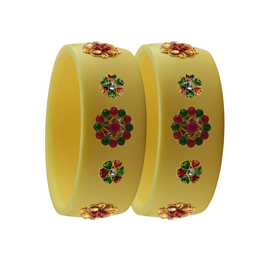 Enamel Yellow color Bangles in Metal Alloy studded with CZ Diamond