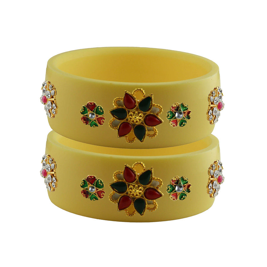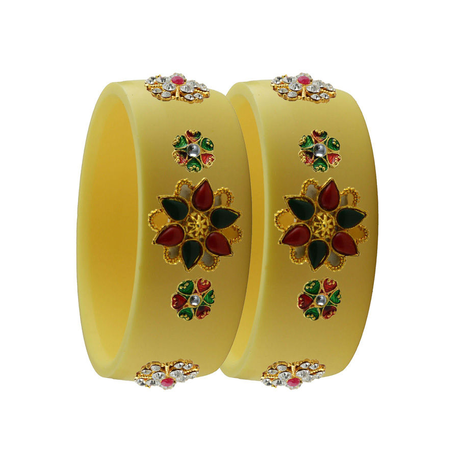 Enamel Yellow color Bangles in Metal Alloy studded with CZ Diamond