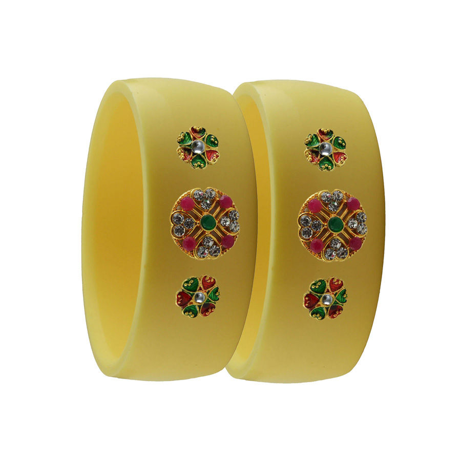 Enamel Yellow color Bangles in Metal Alloy studded with CZ Diamond