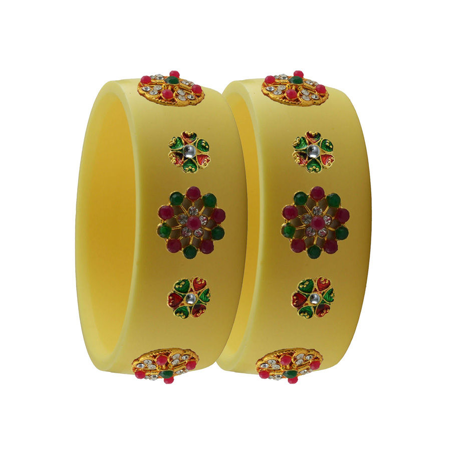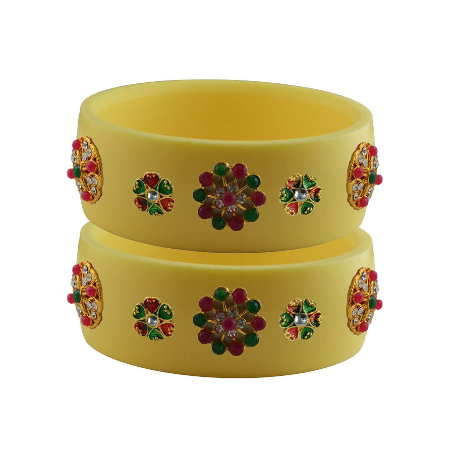Enamel Yellow color Bangles in Metal Alloy studded with CZ Diamond