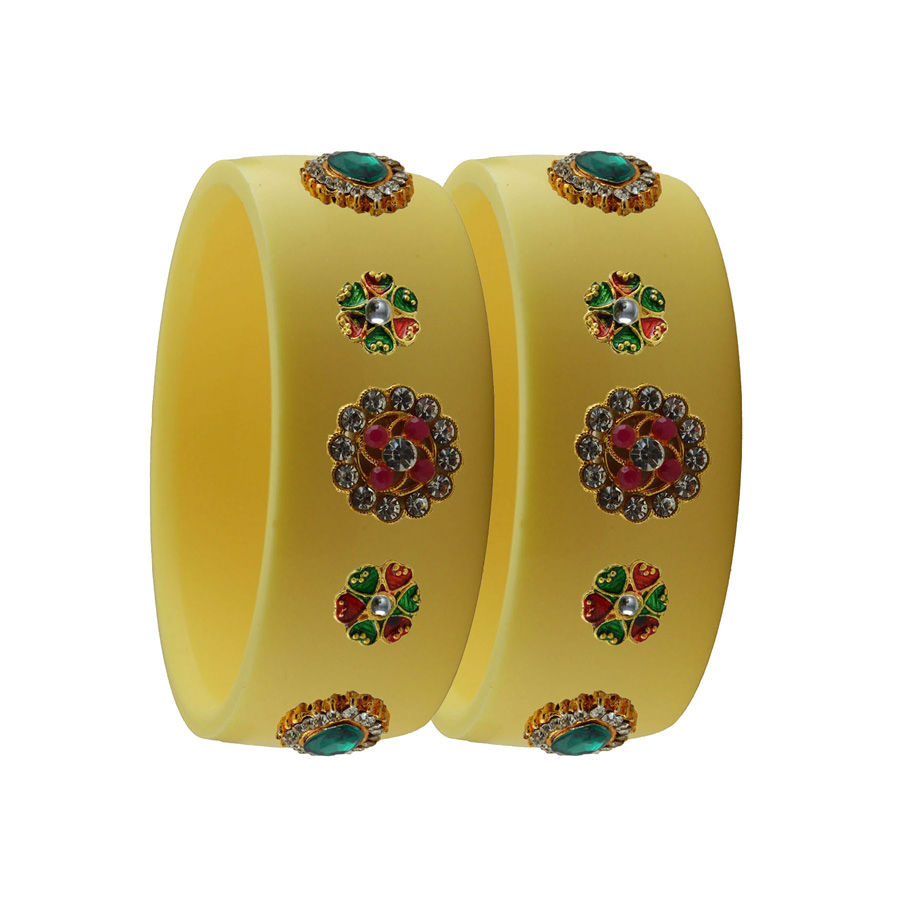 Enamel Yellow color Bangles in Metal Alloy studded with CZ Diamond