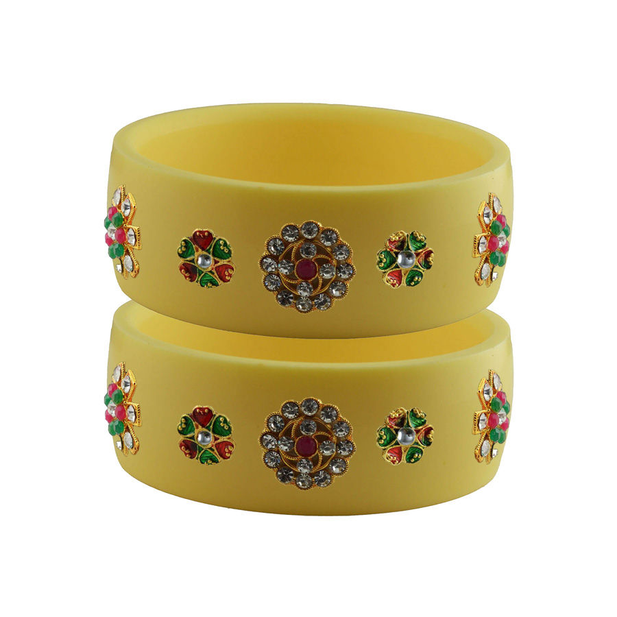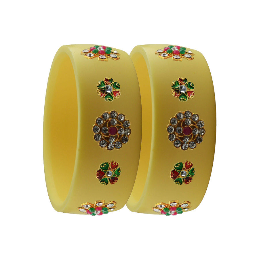 Enamel Yellow color Bangles in Metal Alloy studded with CZ Diamond
