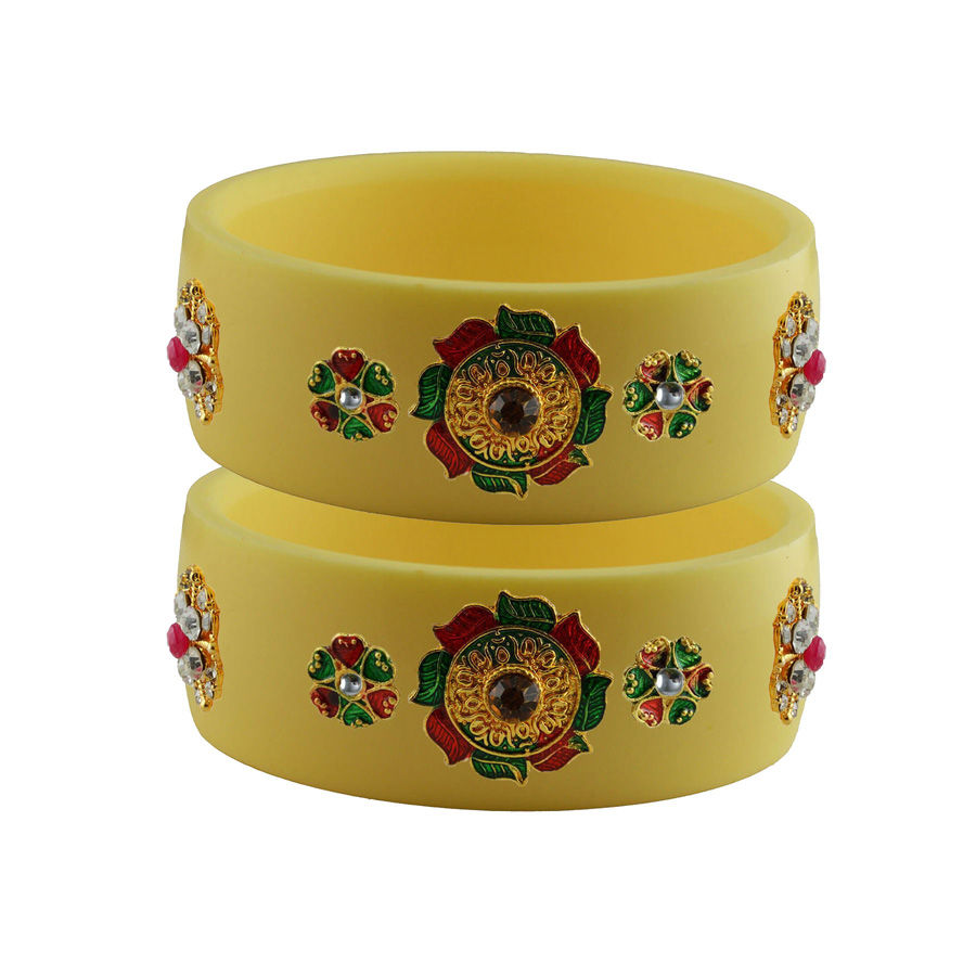 Enamel Yellow color Bangles in Metal Alloy studded with CZ Diamond