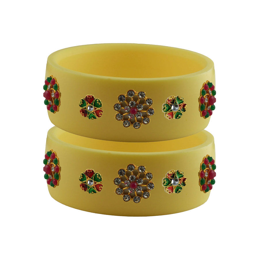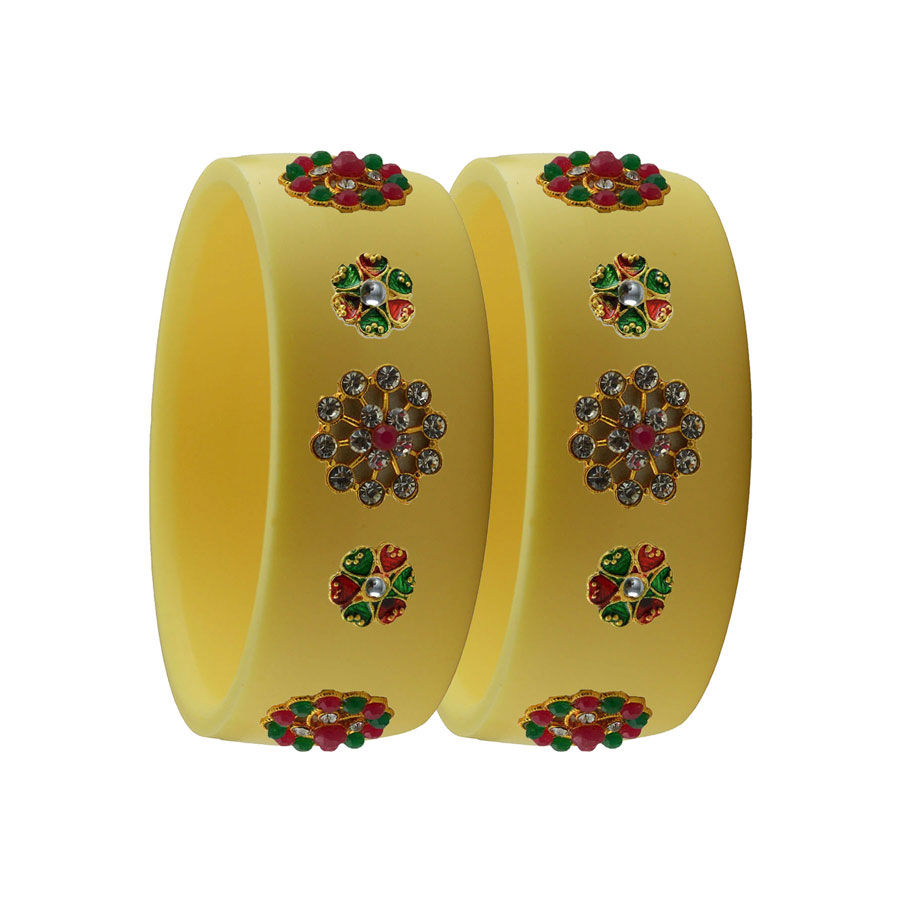 Enamel Yellow color Bangles in Metal Alloy studded with CZ Diamond