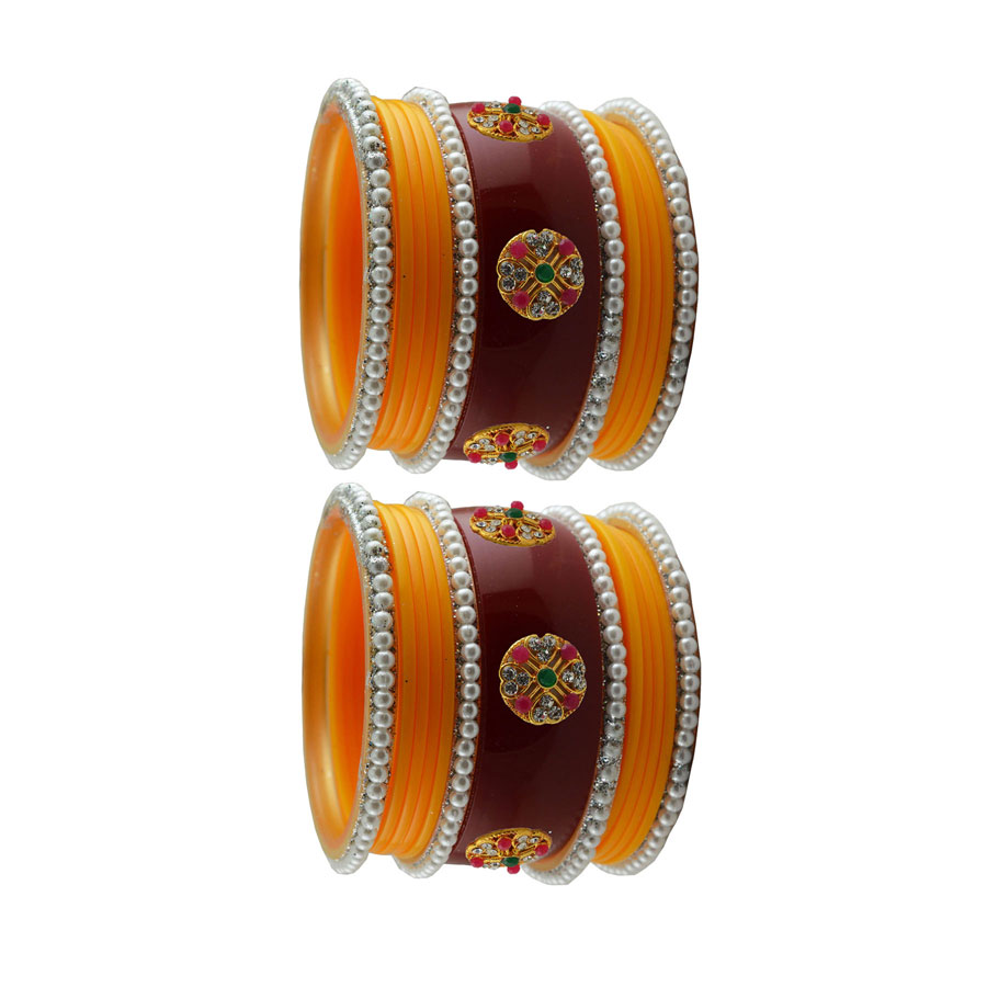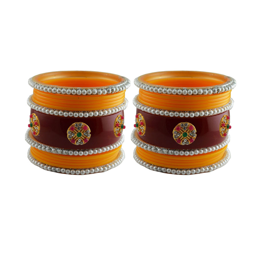 Enamel Red and Maroon, Yellow color Bangles in Metal Alloy studded with CZ Diamond