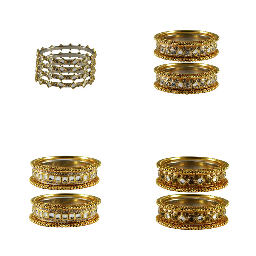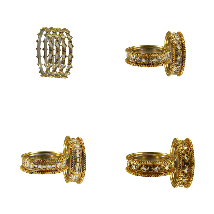 Gold Rodium Polish Gold color Bangles in Brass studded with CZ Diamond