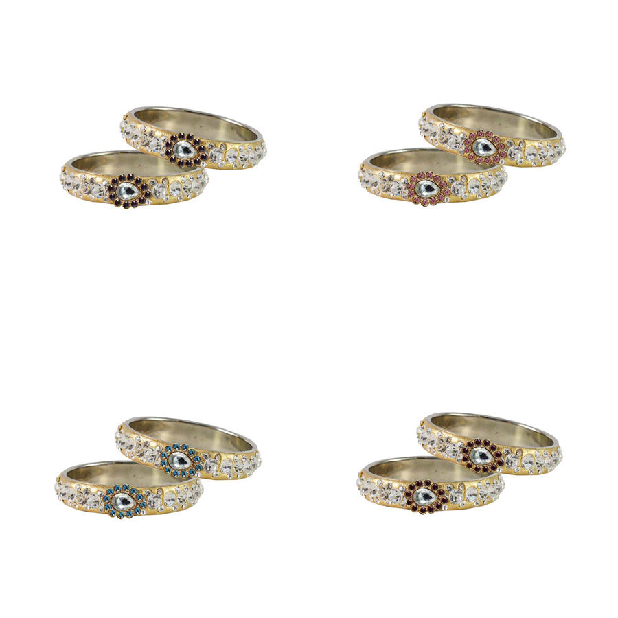 Gold Rodium Polish Gold color Bangles in Brass studded with CZ Diamond