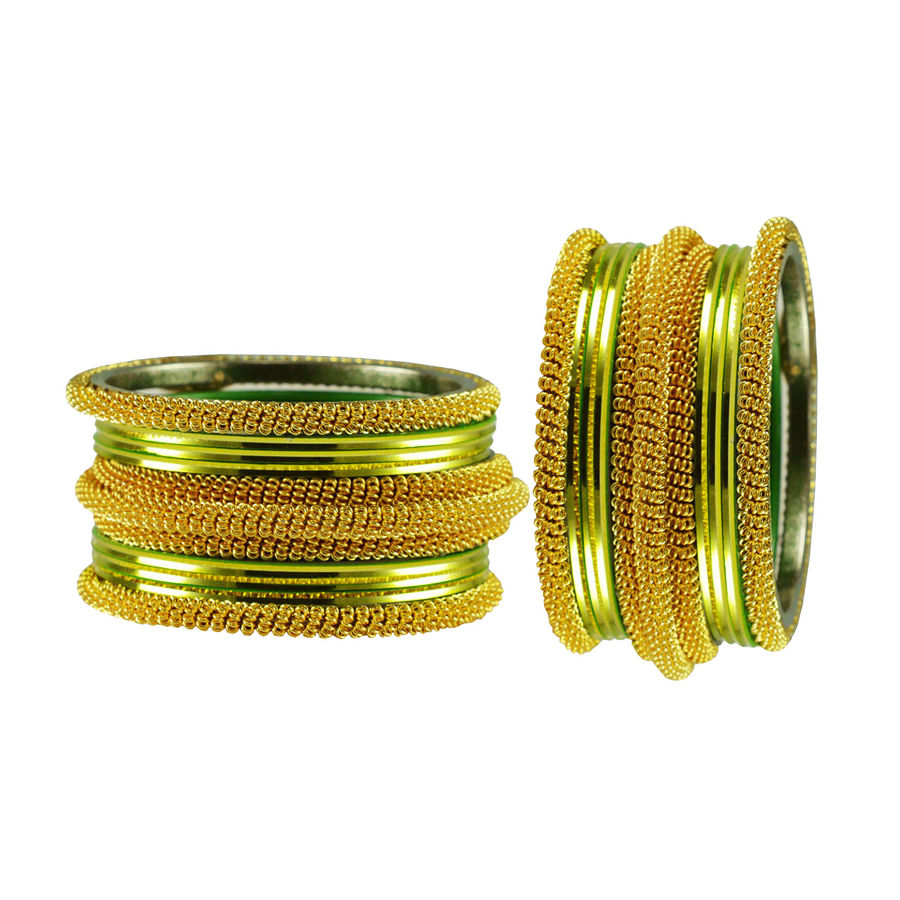 Gold Rodium Polish Green Bangles