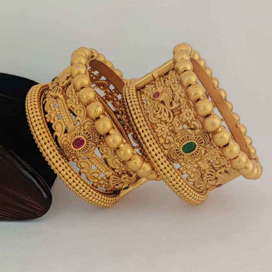 Gold Rodium Polish Green, Red and Maroon color Bangles in Brass, Metal Alloy studded with CZ Diamond