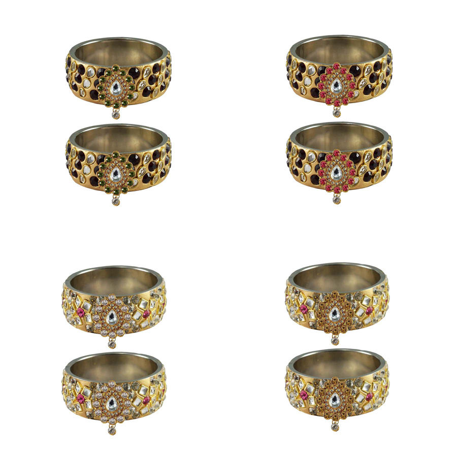 Gold Rodium Polish Multicolor color Bangles in Brass studded with CZ Diamond