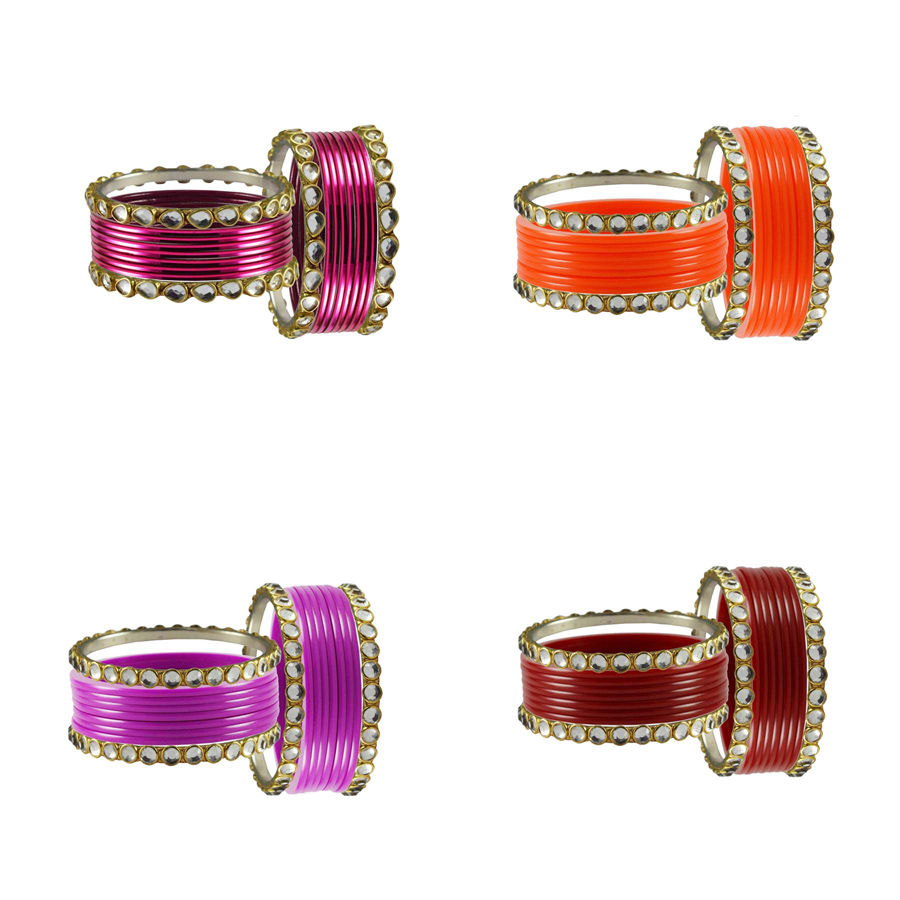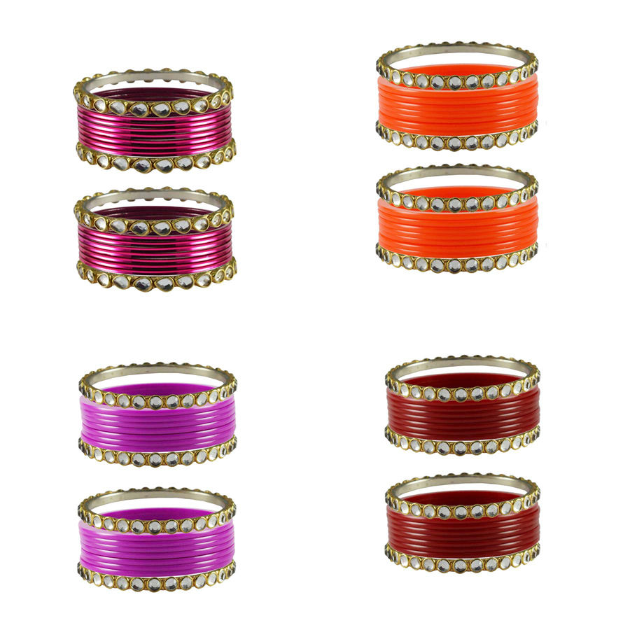 Gold Rodium Polish Multicolor color Bangles in Brass studded with CZ Diamond