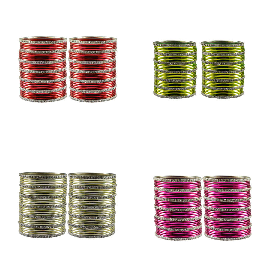 Gold Rodium Polish Multicolor color Bangles in Brass studded with CZ Diamond