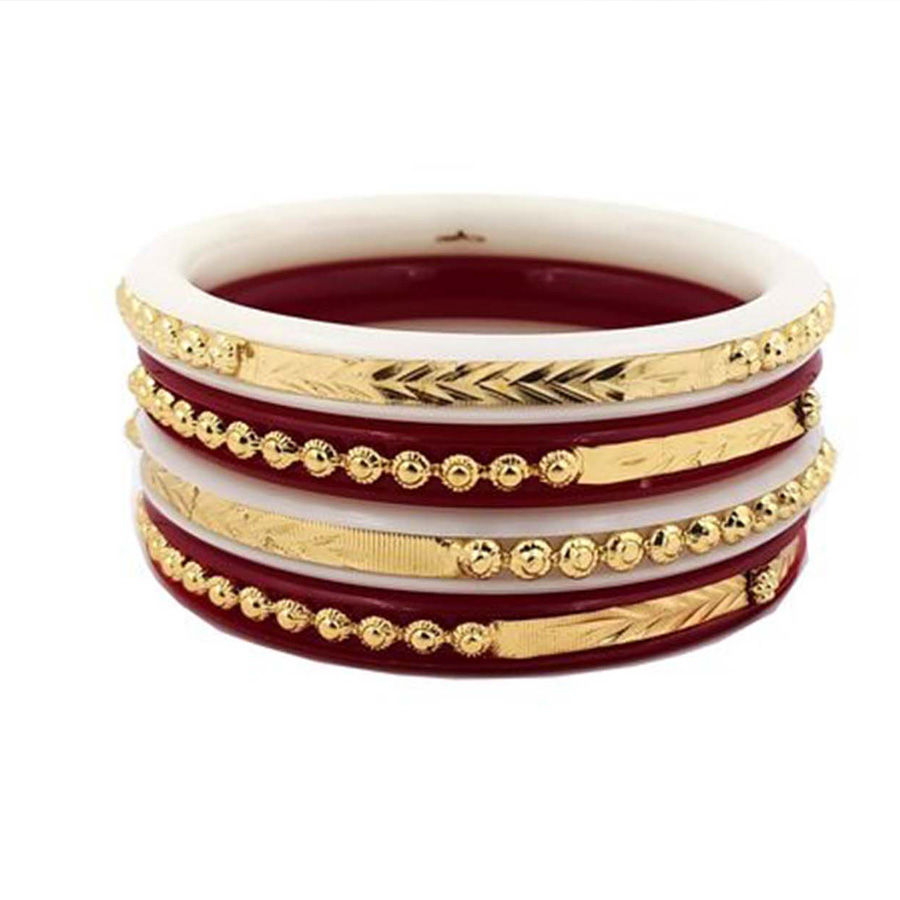 Gold Rodium Polish Red and Maroon Bangles in Metal Alloy with Beads