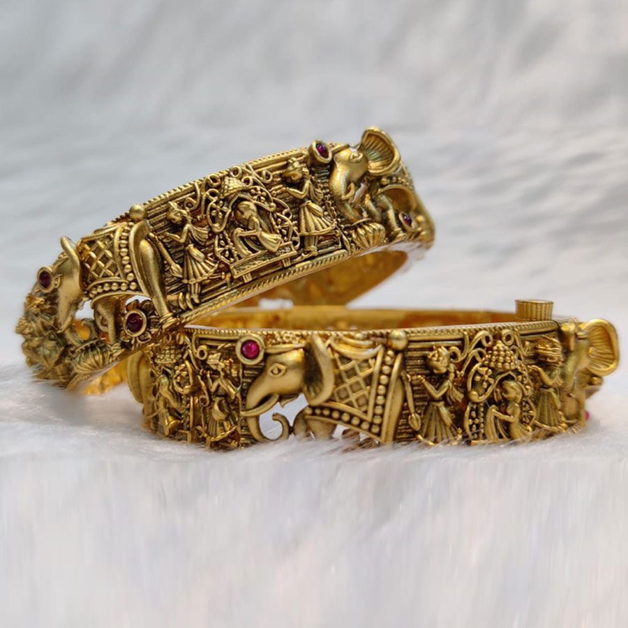 Gold Rodium Polish Pink and Majenta color Bangles in Copper studded with CZ Diamond