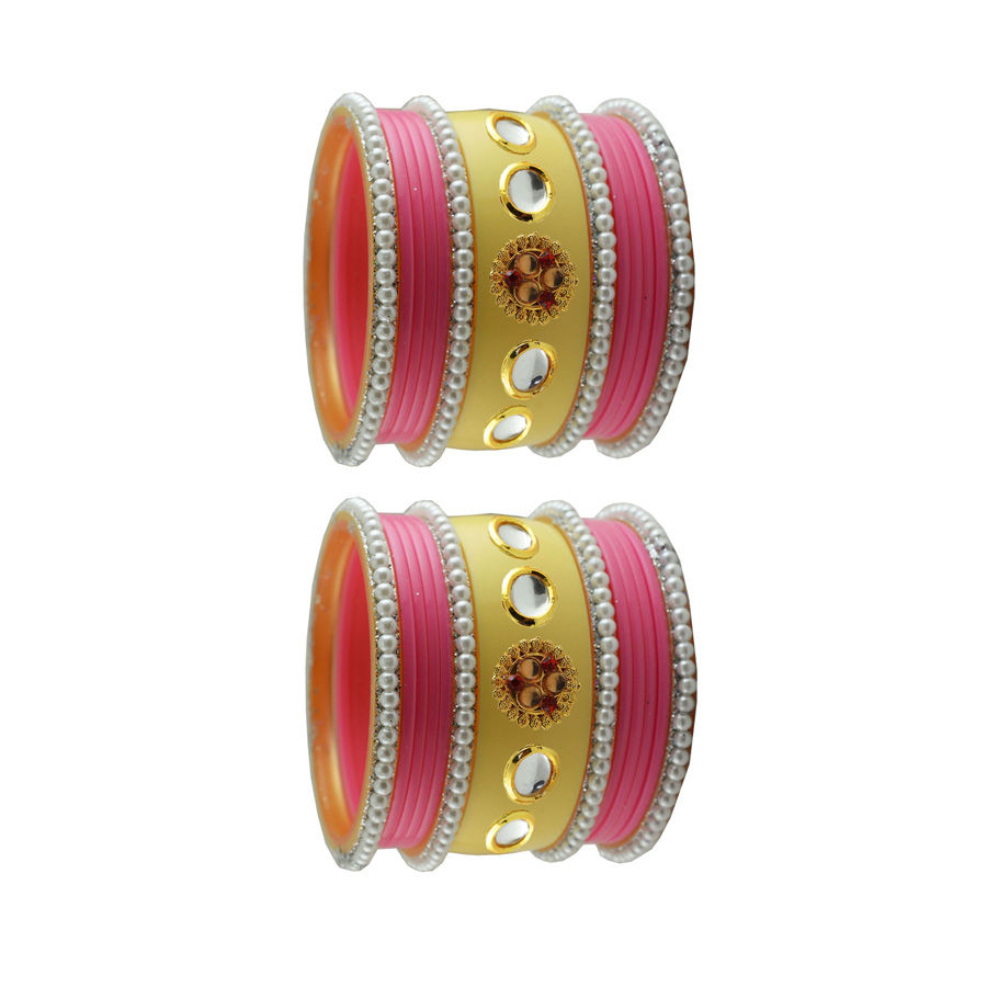 Gold Rodium Polish Pink and Majenta color Bangles in Metal Alloy studded with CZ Diamond