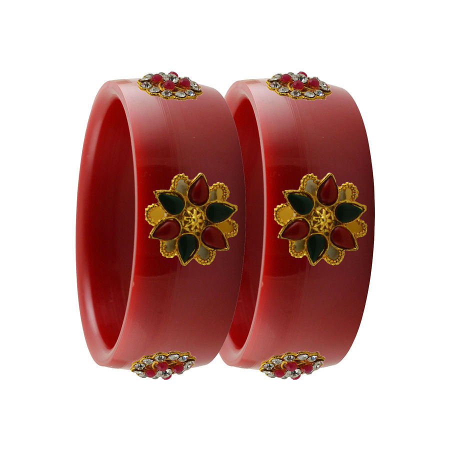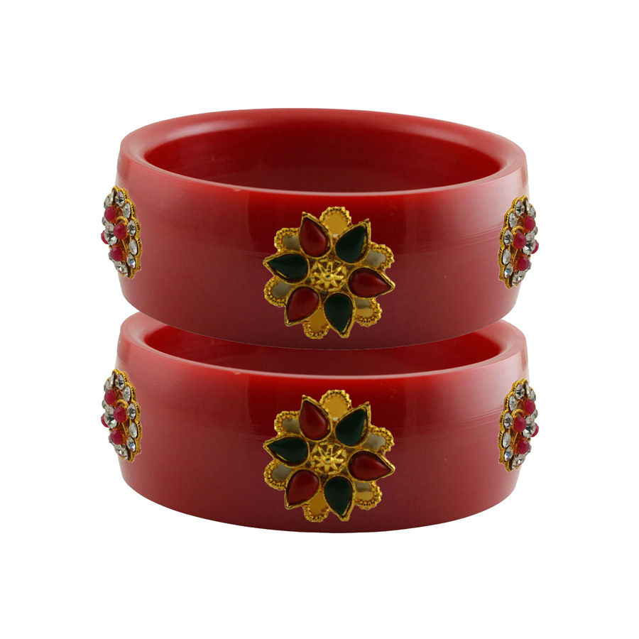 Gold Rodium Polish Red and Maroon color Bangles in Brass, Copper, Metal Alloy studded with CZ Diamond