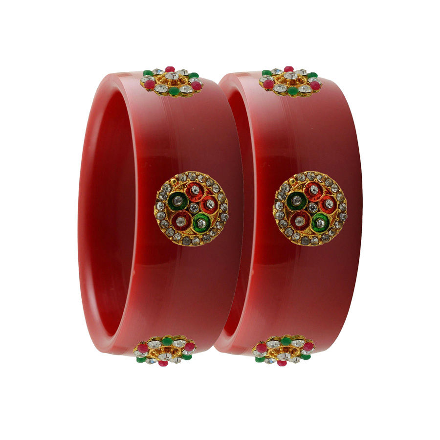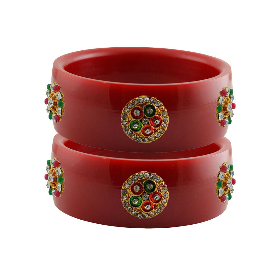 Gold Rodium Polish Red and Maroon color Bangles in Metal Alloy studded with CZ Diamond