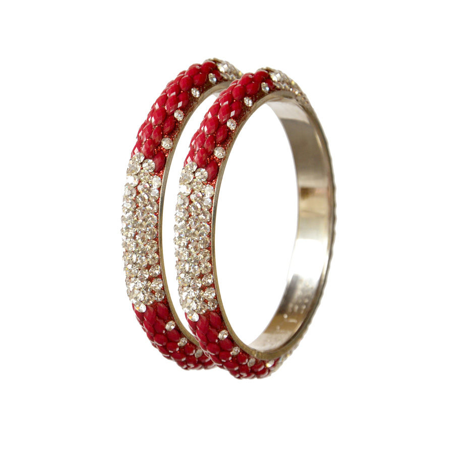 Gold Rodium Polish Red and Maroon, White and Off White color Bangles in Brass studded with CZ Diamond, Kundan