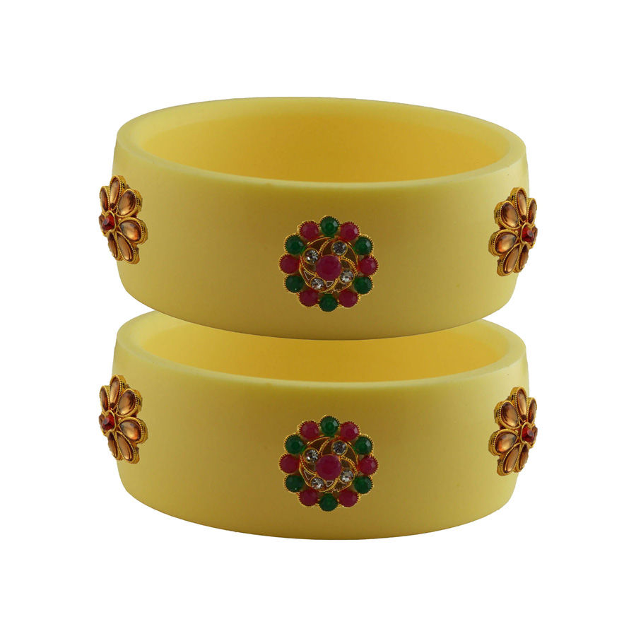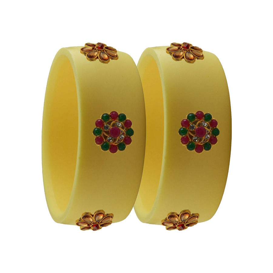Gold Rodium Polish Yellow color Bangles in Metal Alloy studded with CZ Diamond