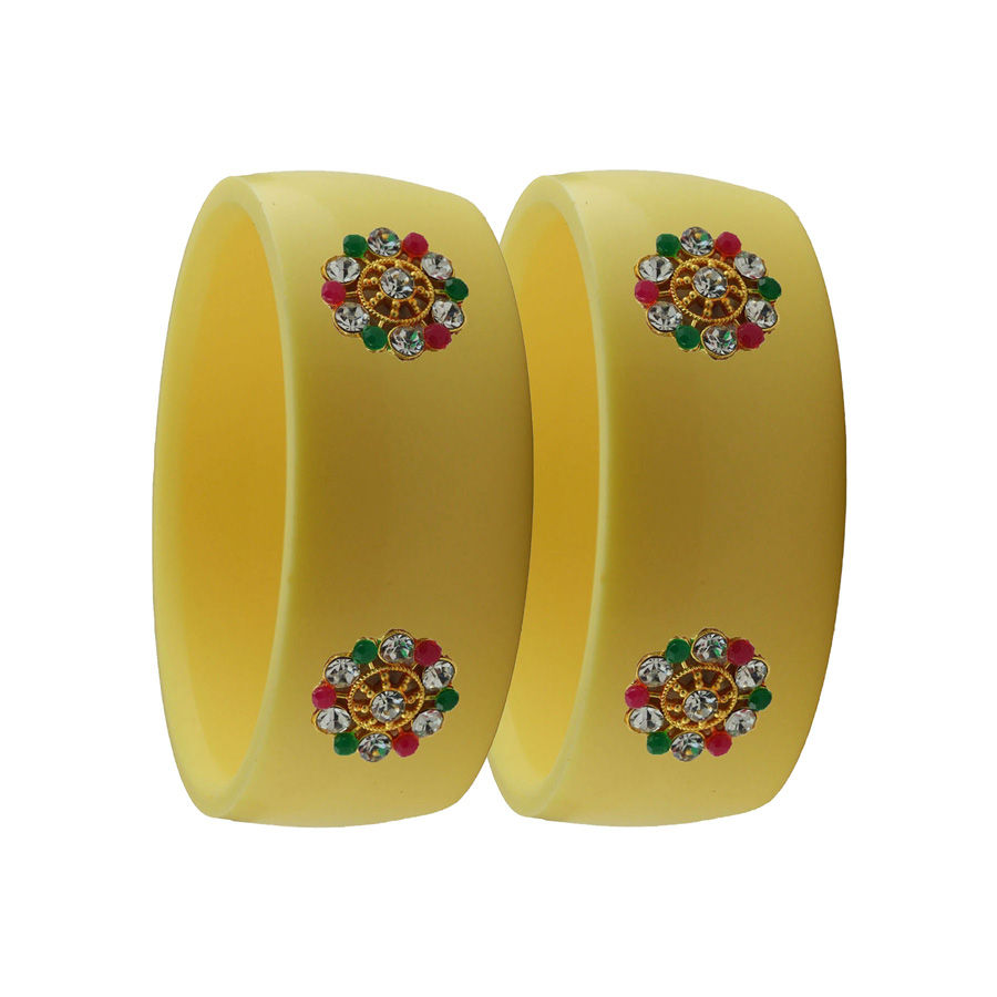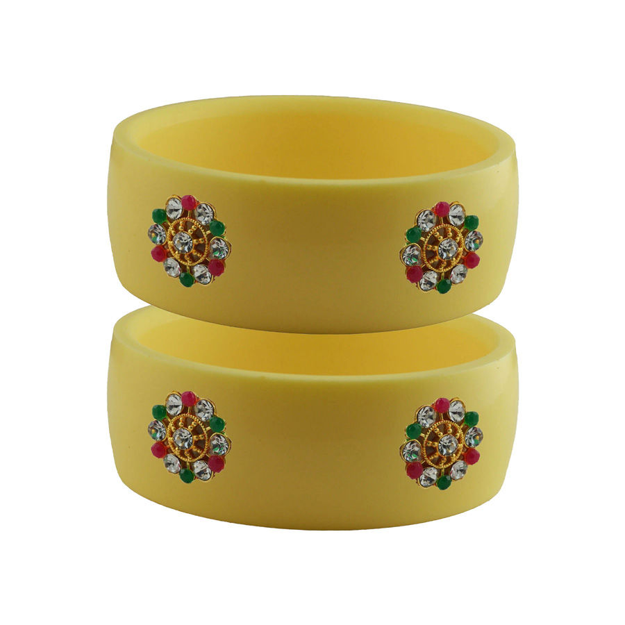 Gold Rodium Polish Yellow color Bangles in Metal Alloy studded with CZ Diamond