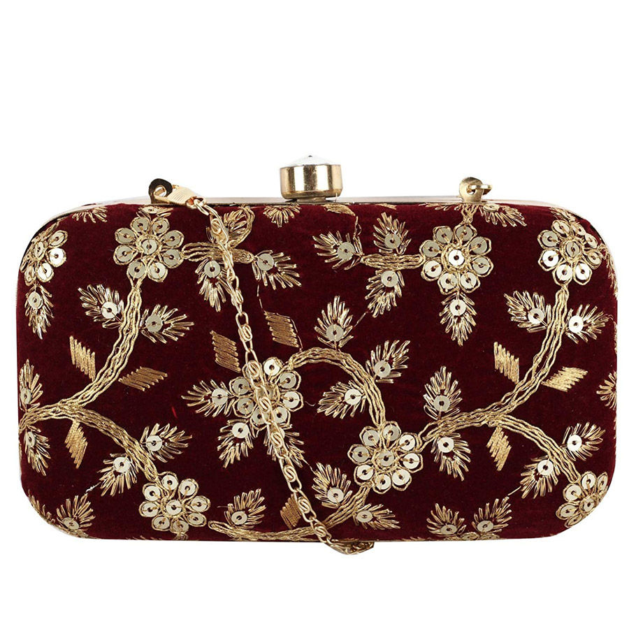 Red and Maroon color Bindi in Synthetic fabric with Embroidered, Sequence, Thread work