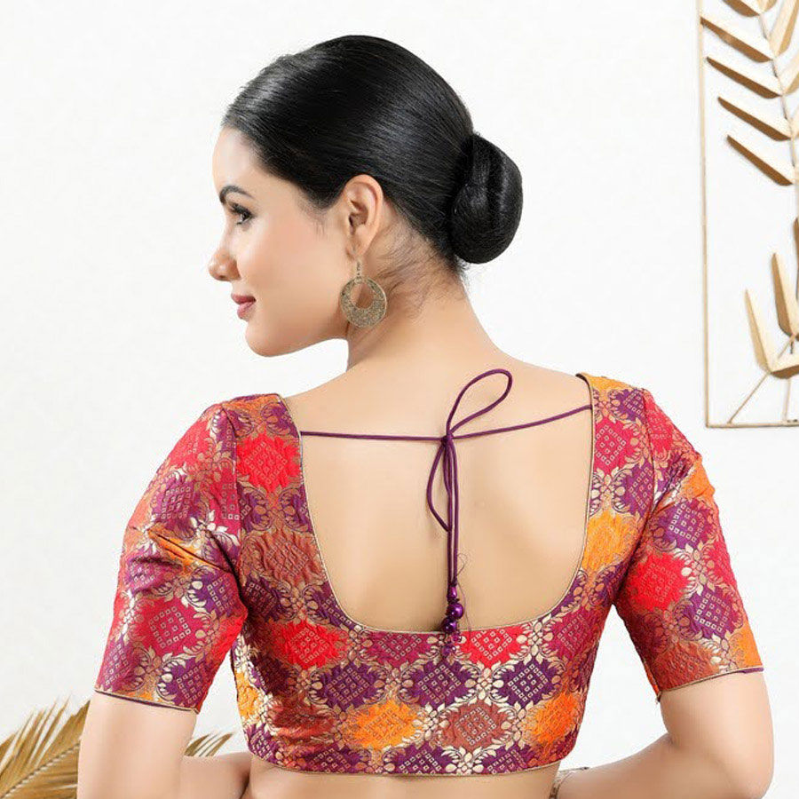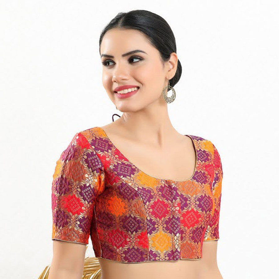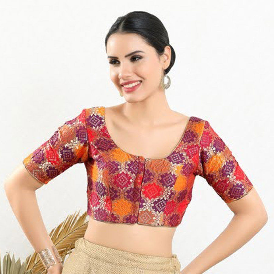 Multicolor color Blouse in Jacquard fabric with Weaving work