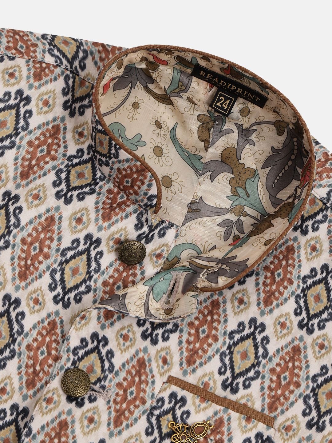 in Beige and Brown with Printed work