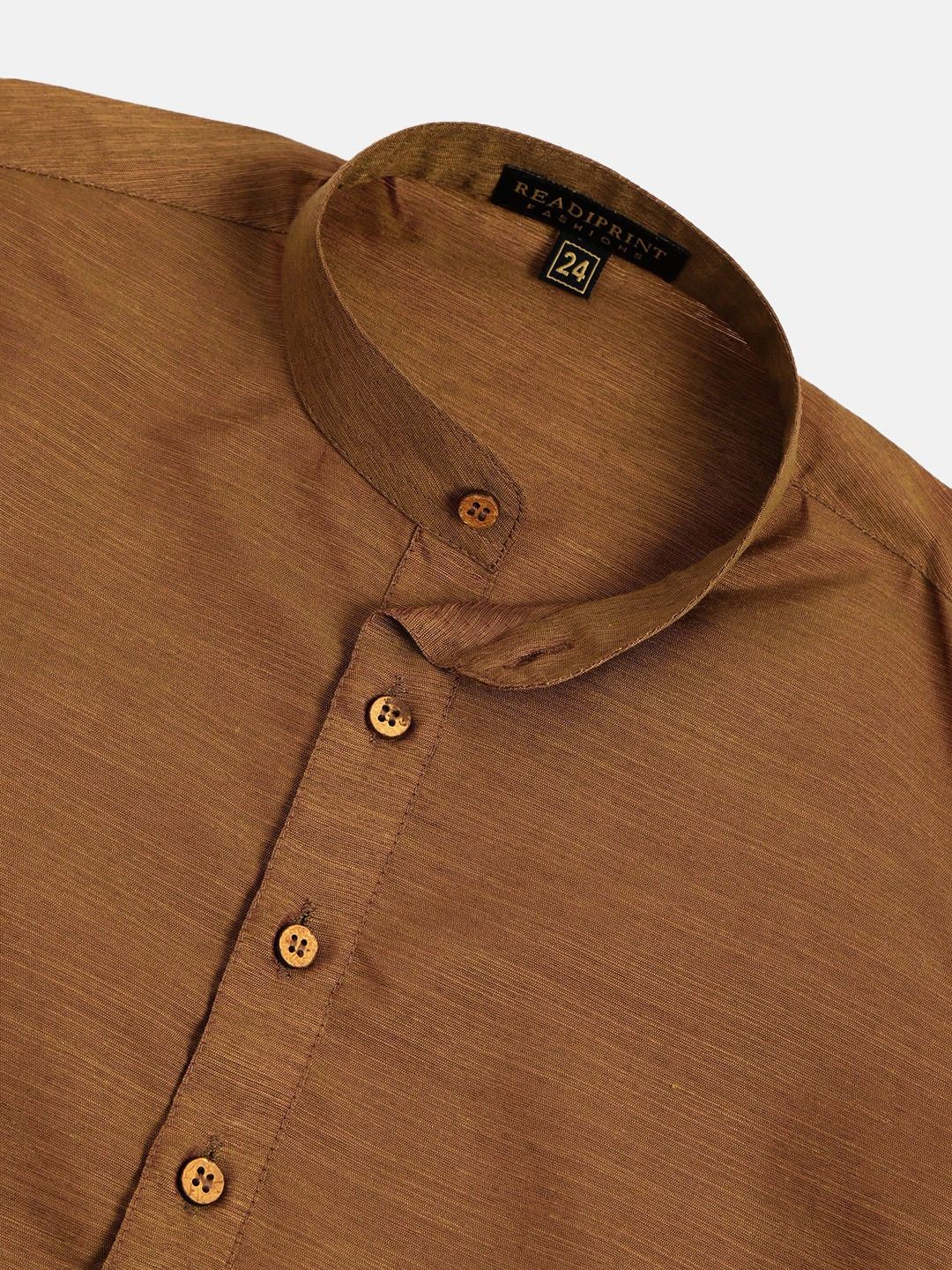 Beige and Brown color Boys Kurta Pyjama in Art Silk fabric with Printed work