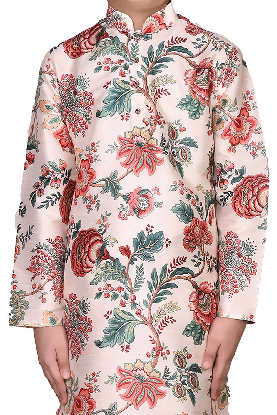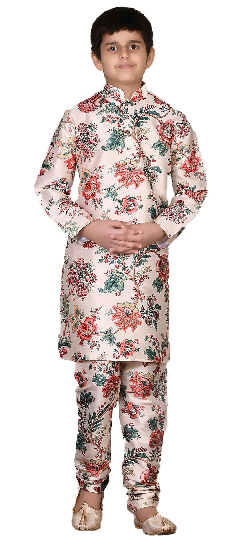 Beige and Brown color Boys Kurta Pyjama in Art Silk fabric with Floral, Printed work : 1777160