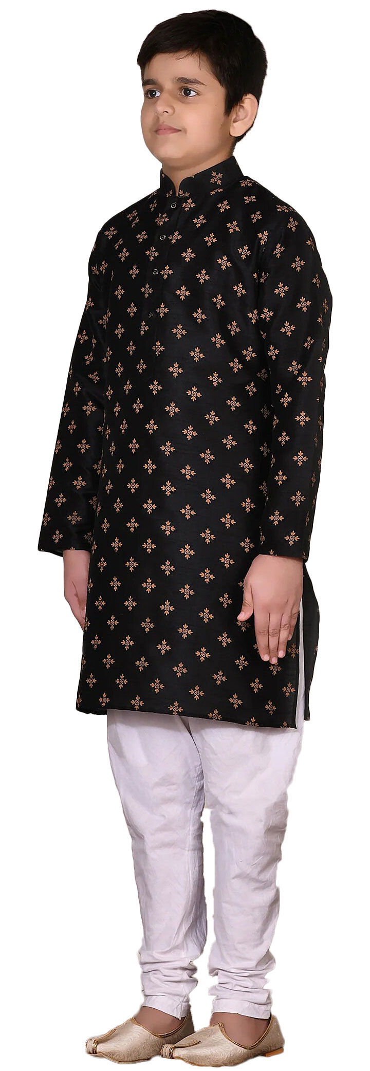 Art Silk Boys Kurta Pyjama in Black and Grey with Thread work