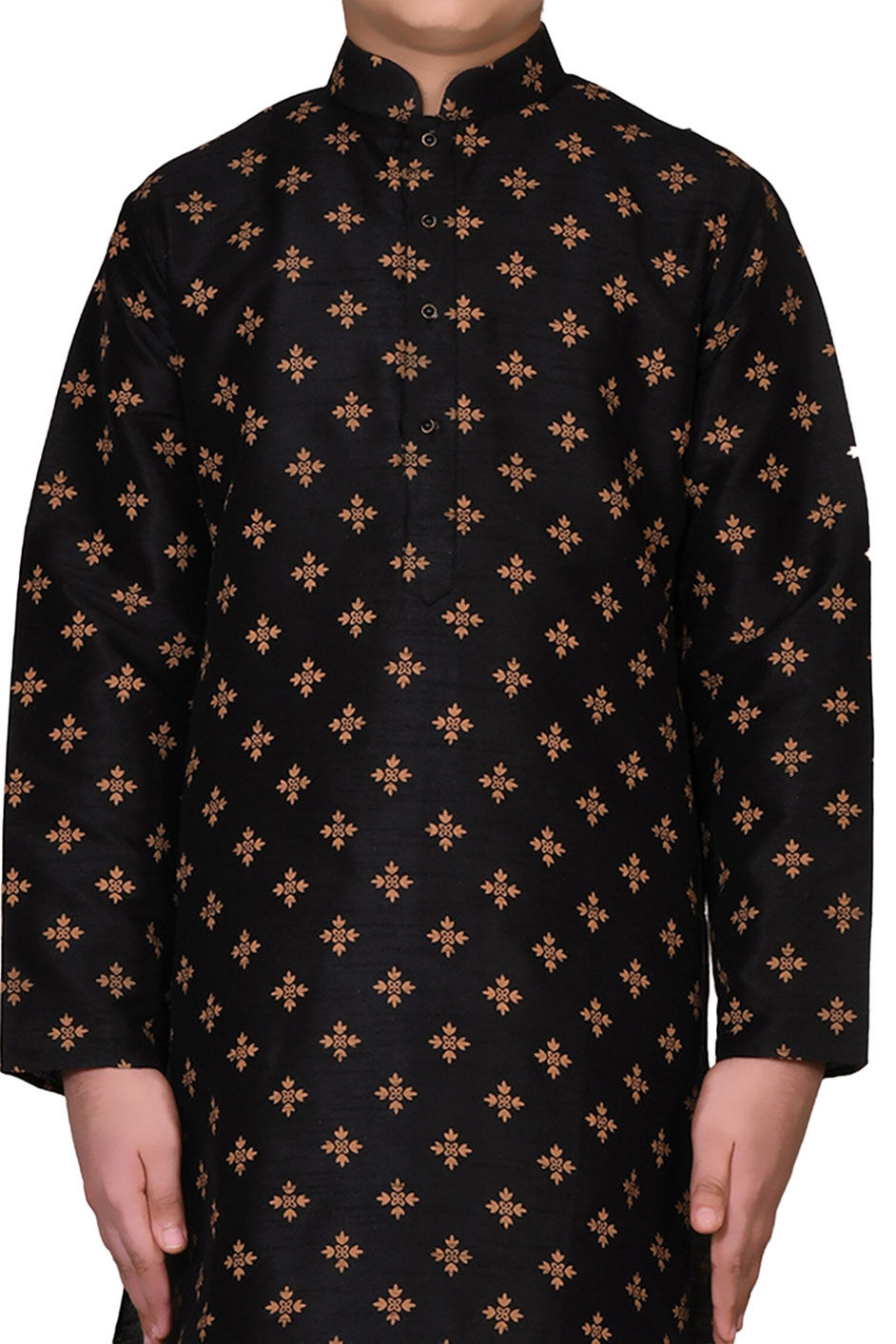 Black and Grey color Boys Kurta Pyjama in Art Silk fabric with Printed work : 1777022