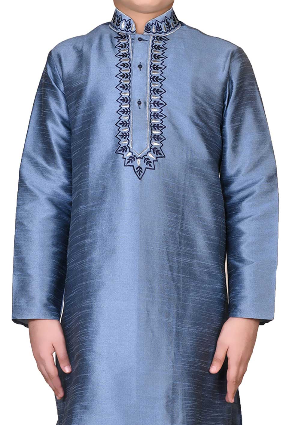 Art Silk Boys Kurta Pyjama in Black and Grey with Thread work