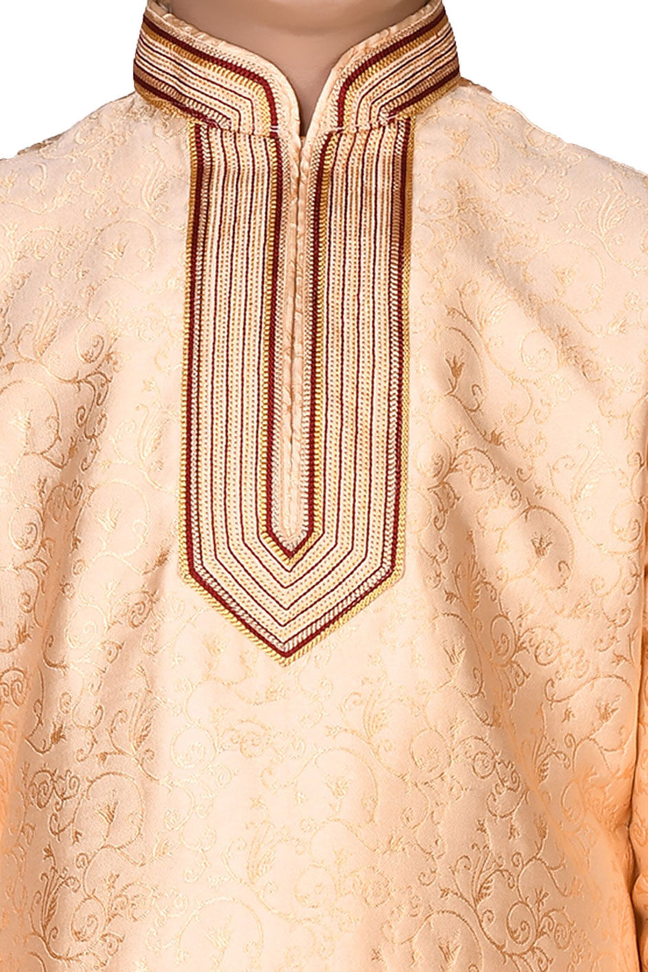 Gold color Boys Kurta Pyjama in Art Silk fabric with Lace, Weaving work : 1777105