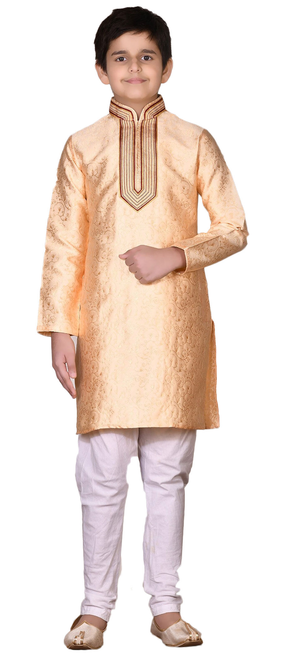 Art Silk Boys Kurta Pyjama in Gold with Zari work