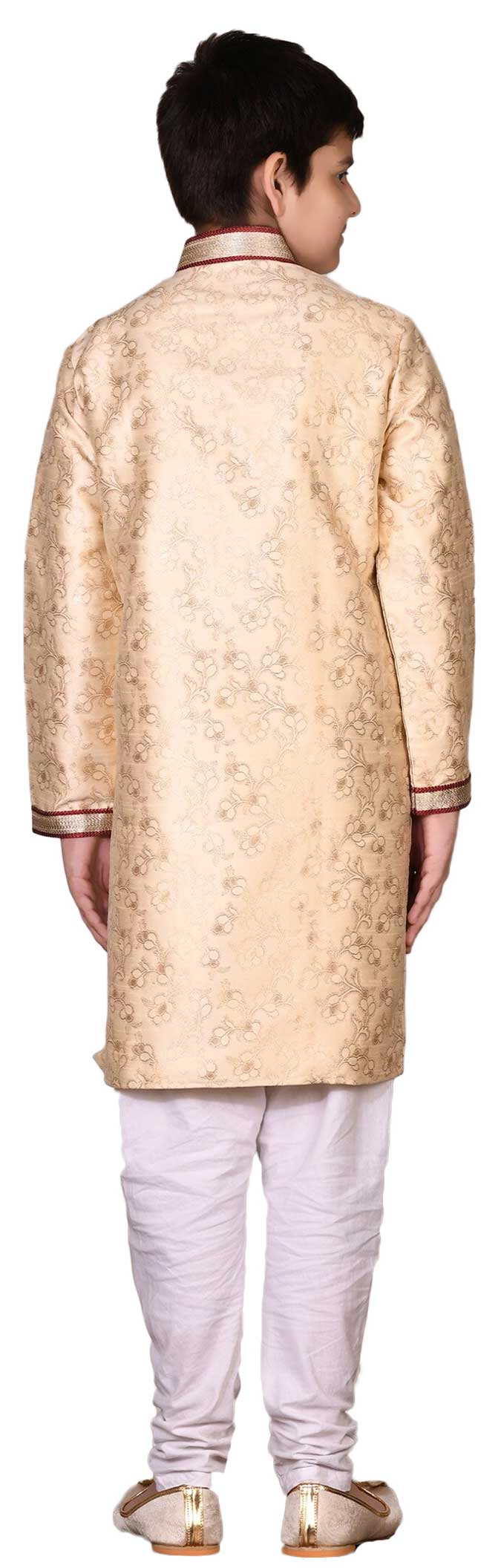 Art Silk Boys Kurta Pyjama in Gold with Zari work
