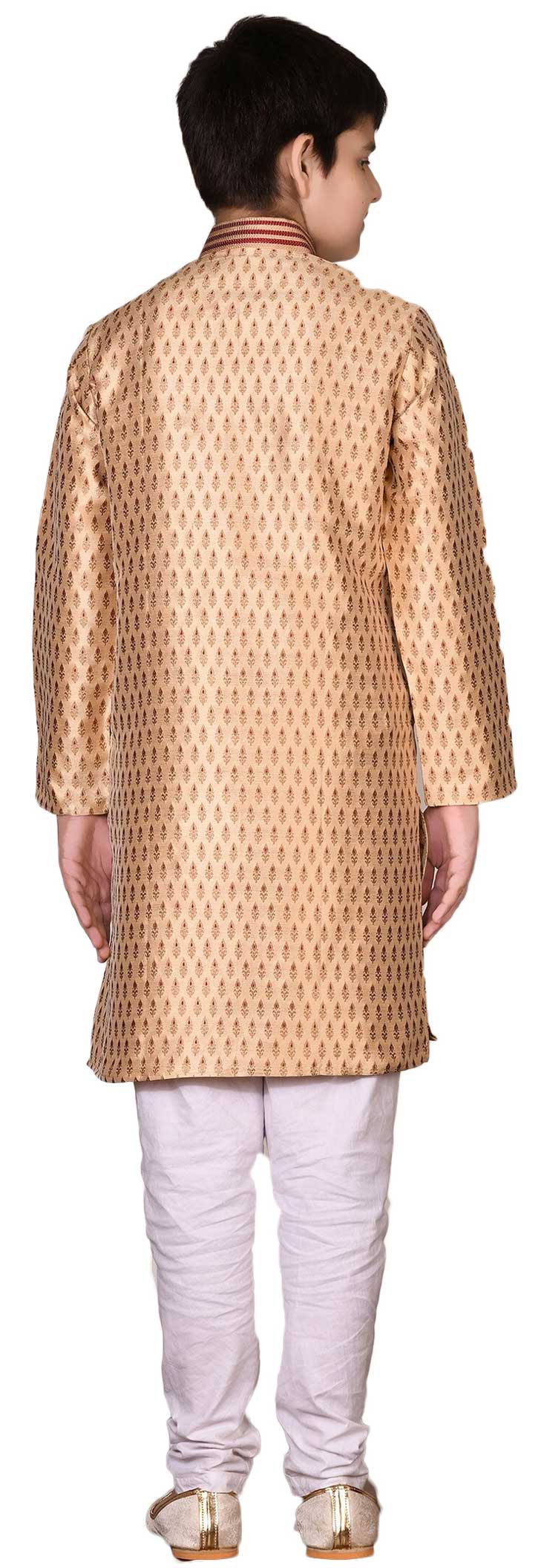Art Silk Boys Kurta Pyjama in Gold with Zari work