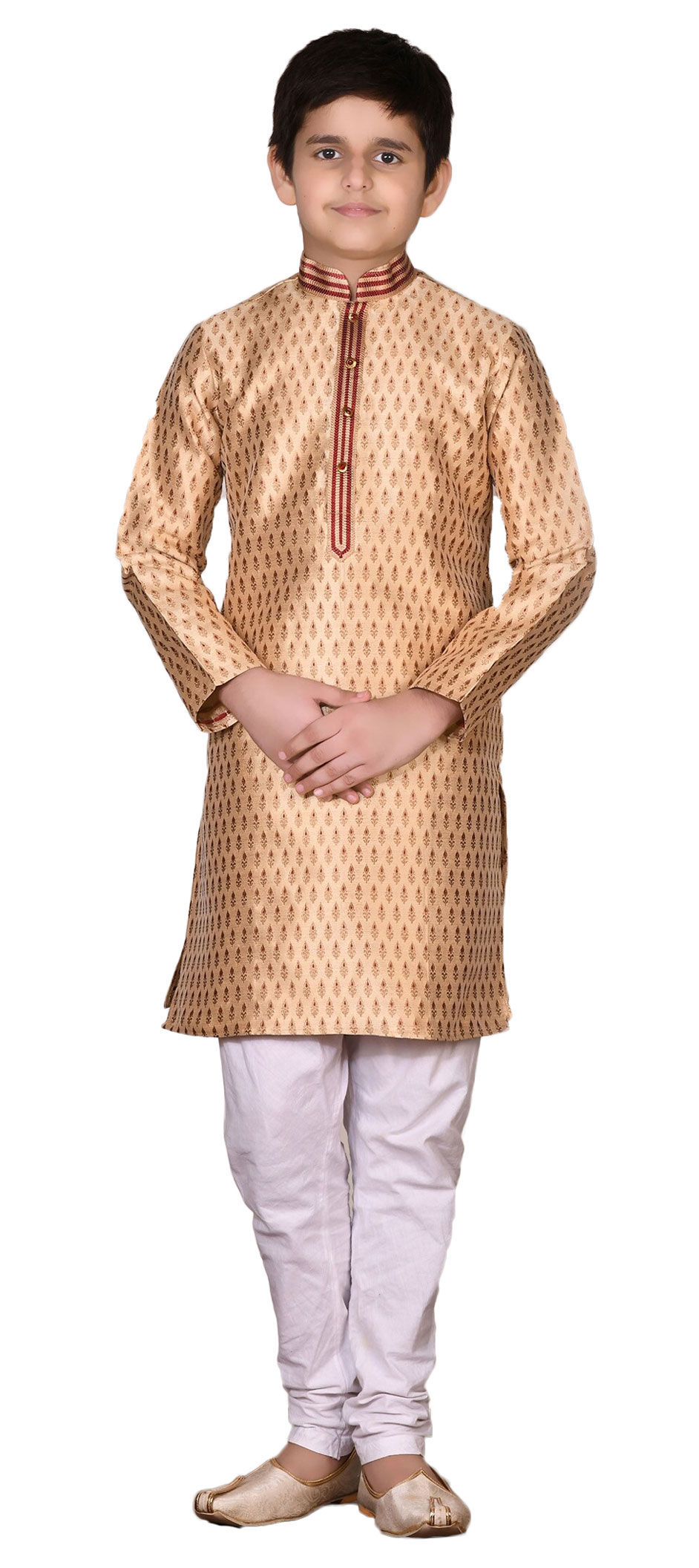Gold color Boys Kurta Pyjama in Art Silk fabric with Printed, Zari work : 1777032