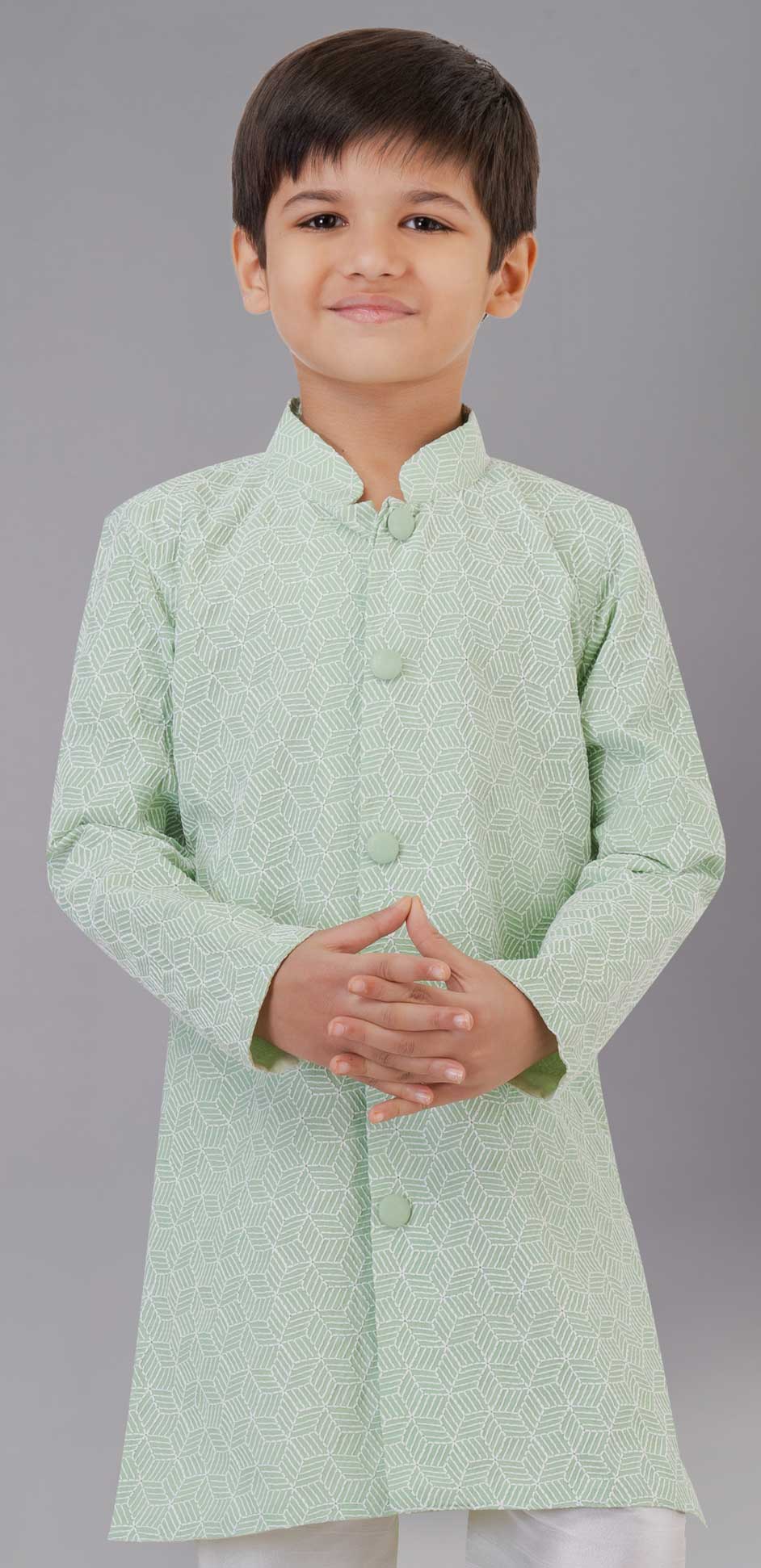 Georgette Boys Kurta Pyjama in Green with Embroidered work