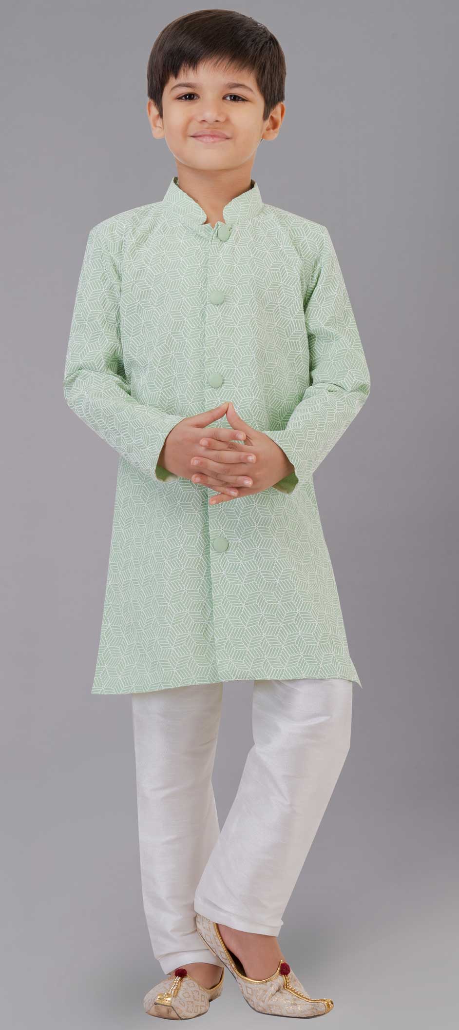 Green color Boys Kurta Pyjama in Art Silk fabric with Embroidered work