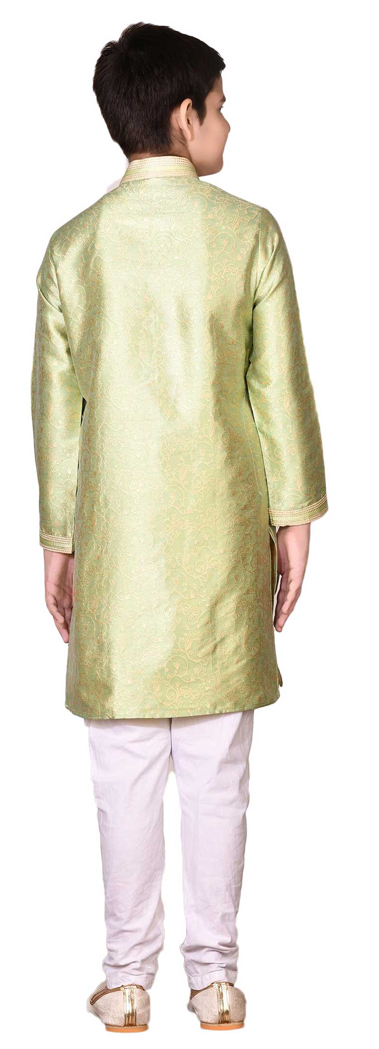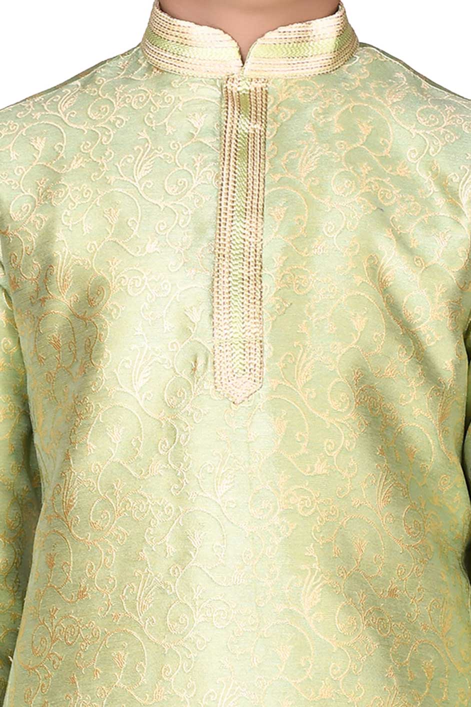 Green color Boys Kurta Pyjama in Art Silk fabric with Lace, Weaving work : 1777125