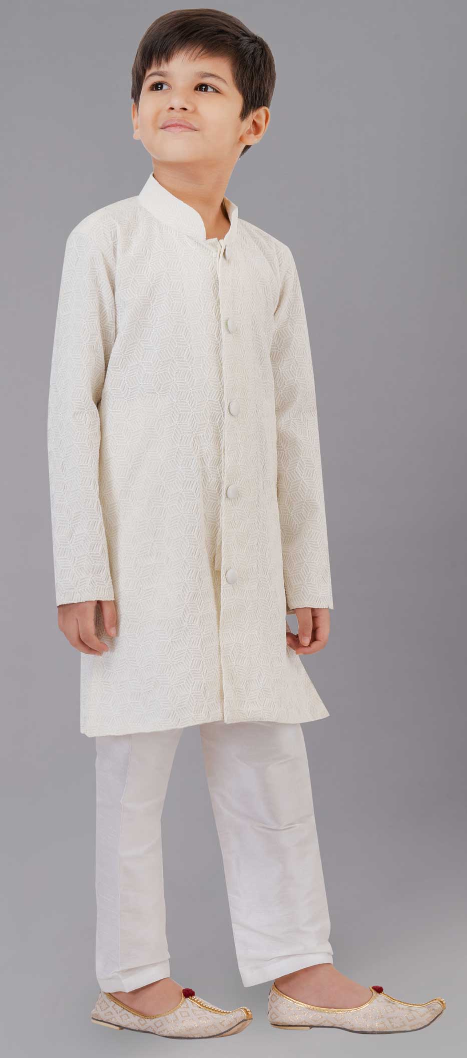 White and Off White color Boys Kurta Pyjama in Art Silk fabric with Embroidered work