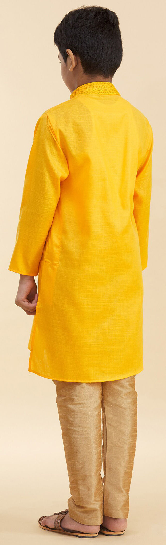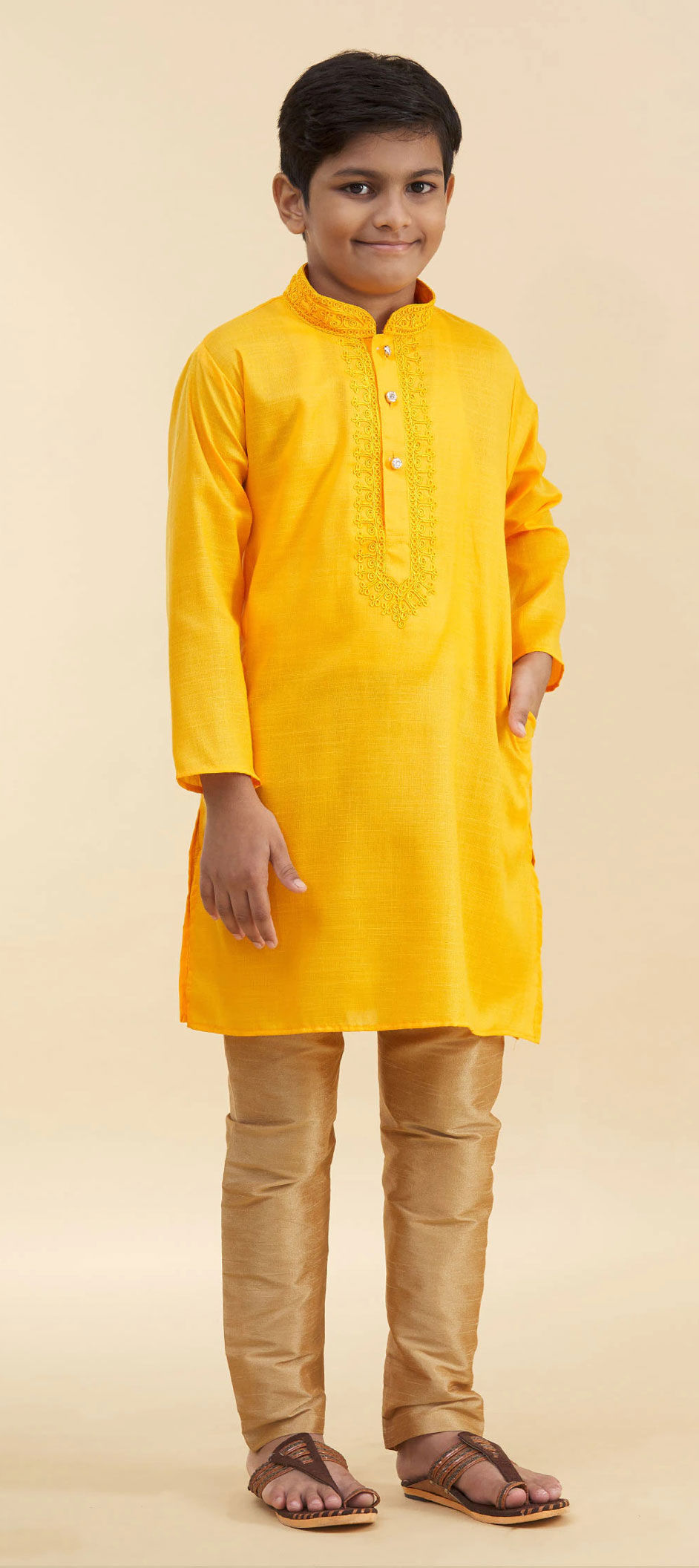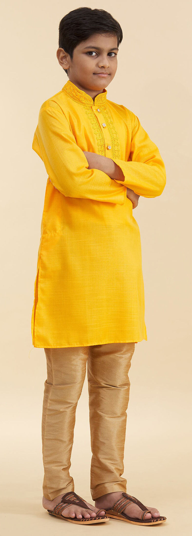 Yellow color Boys Kurta Pyjama in Cotton fabric with Embroidered, Thread work : 1757420
