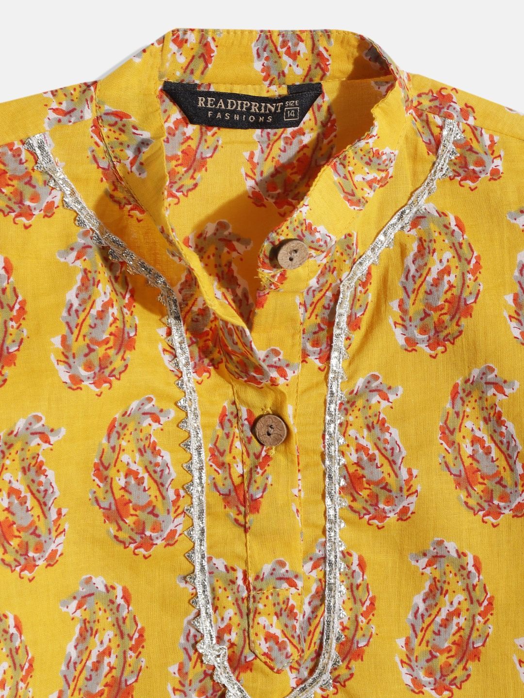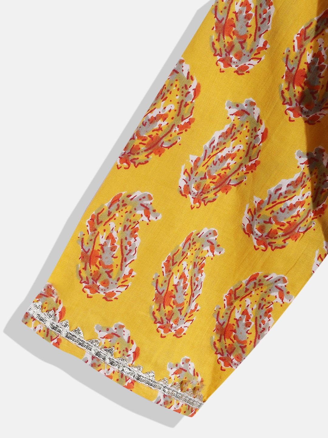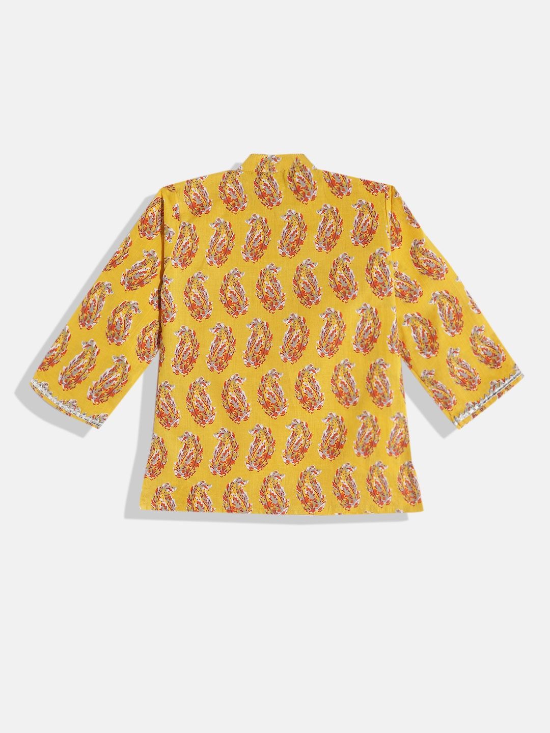 Cotton Boys Kurta Pyjama in Yellow with Printed work